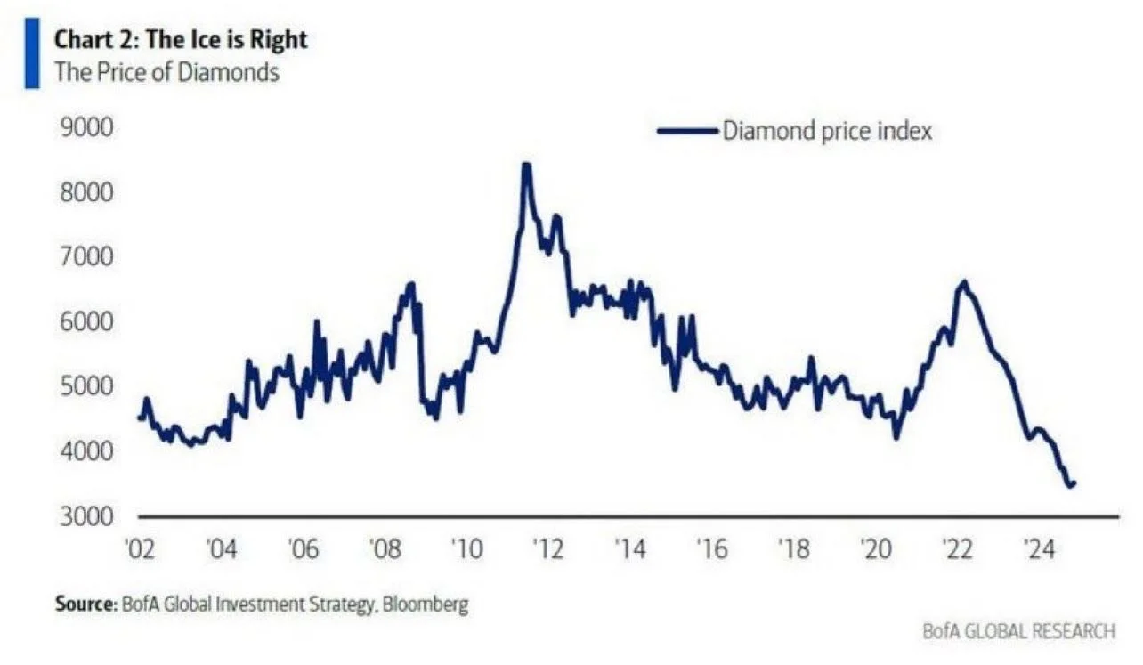 Diamonds have lost their shine for investors. Prices have dropped to their lowest levels this century. Competition from synthetic diamonds?