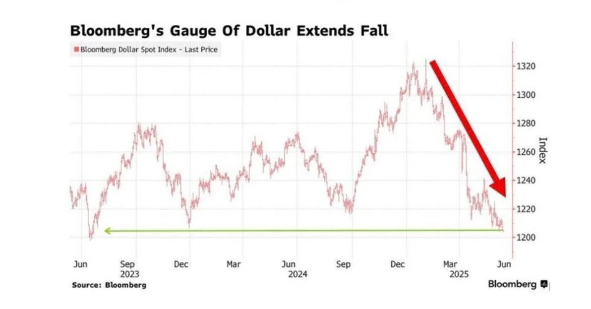 The greenback has declined 8% year-to-date, wiping out all gains from the past 12 months, as foreign investors repatriate capital.