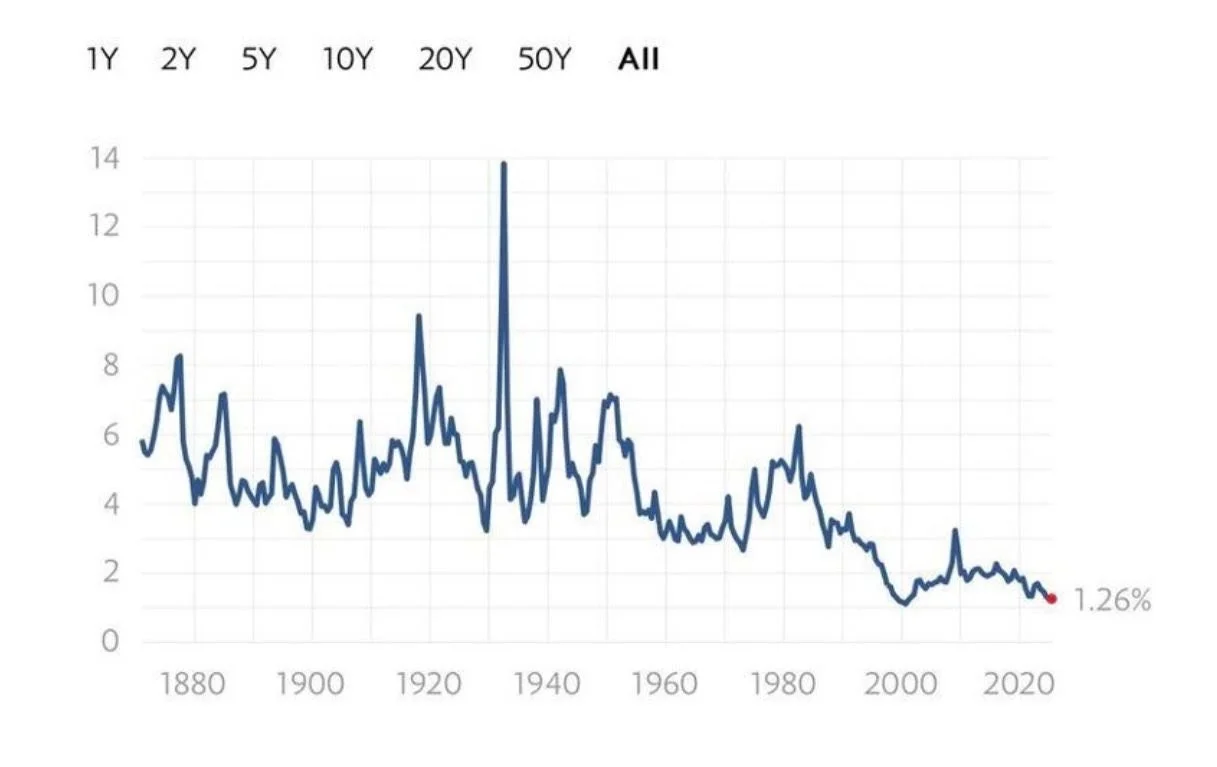 The S&P 500 dividend yield has fallen to just 1.26%, approaching all-time lows.
