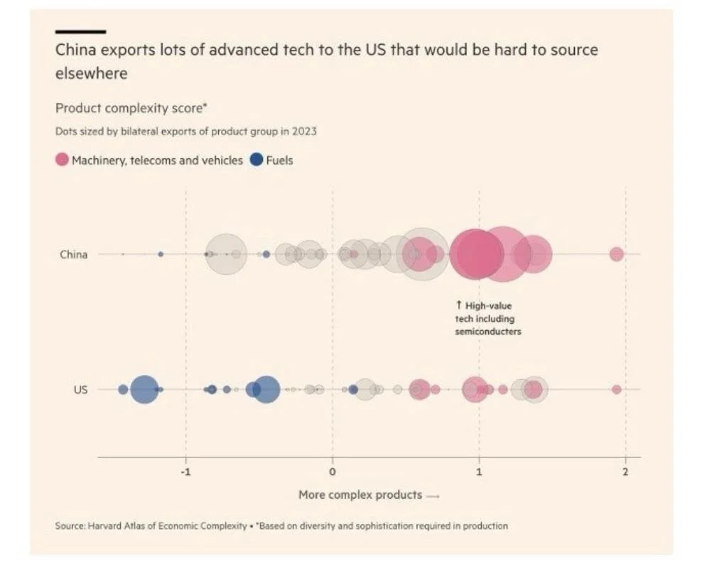 China can replace its imports from the U.S. more easily than the other way around. China exports high-tech to the U.S., while the U.S. exports low-tech & agricultural products to China. Furthermore, China has suspended exports of certain rare minerals and magnets to the U.S.
