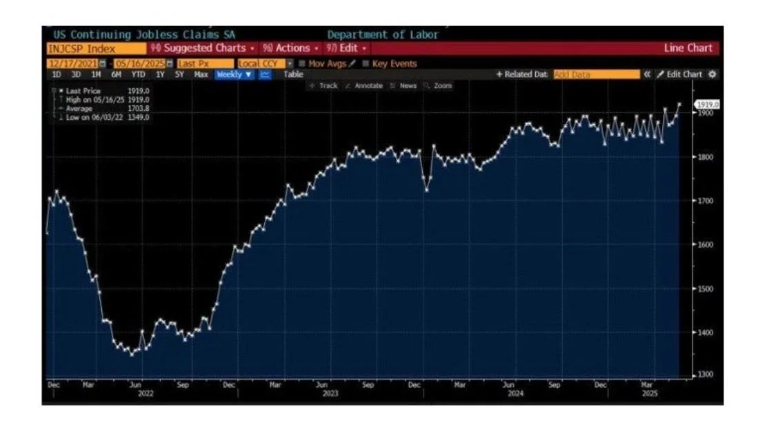 Continuing jobless claims in the U.S. have climbed to their highest level since 2021, indicating it’s taking longer for people to re-enter the workforce.