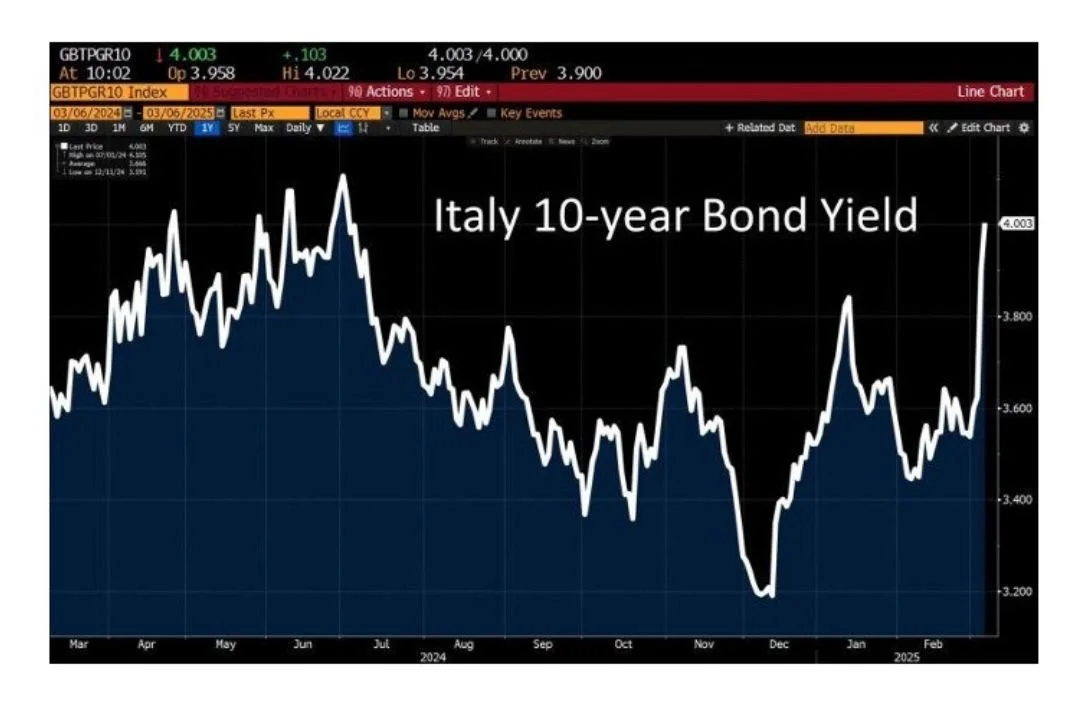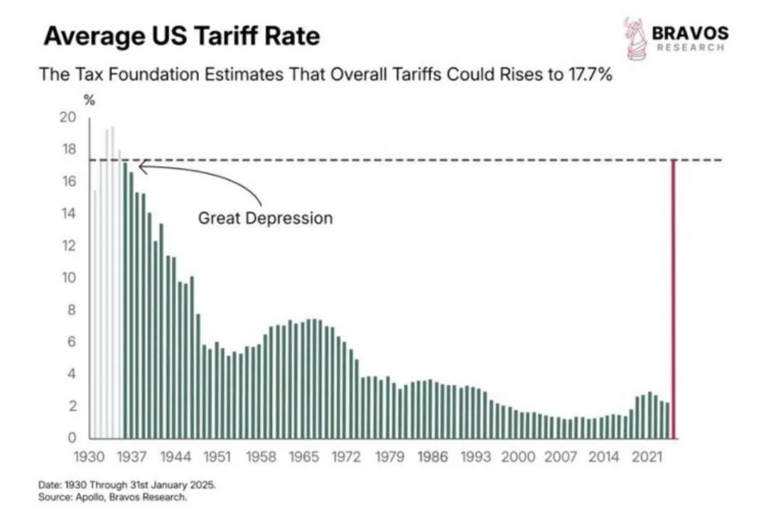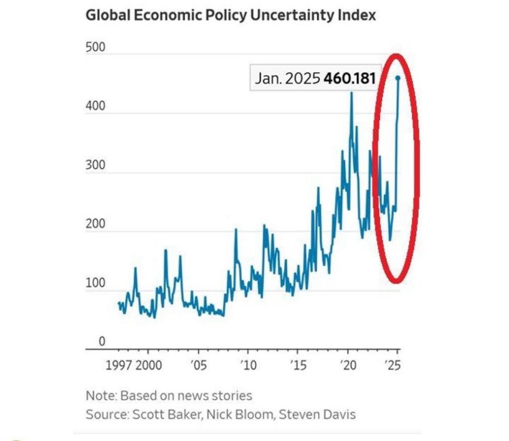 The Economic Policy Uncertainty Index is surging, indicating a more unpredictable investment environment and heightened market volatility, the highest level since the 2018 trade war.