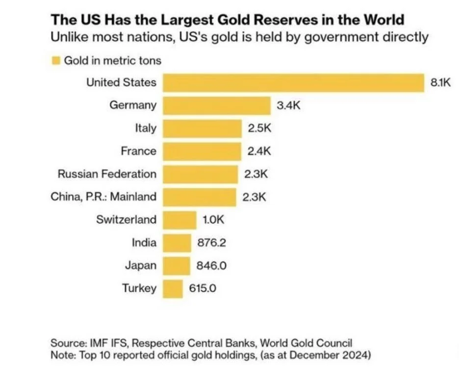 The United States maintains the largest gold reserves globally, surpassing the combined reserves of Russia, China, Switzerland, India, and Japan.