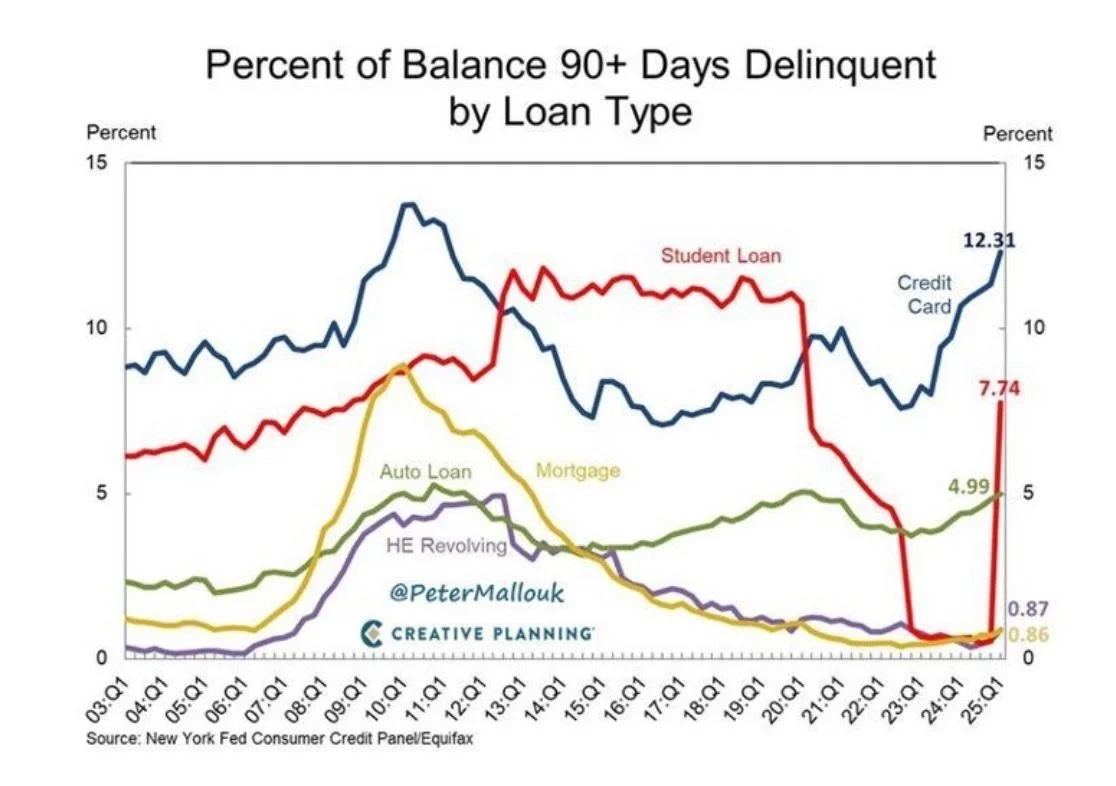 Over 12% of credit card balances are now over 90 days delinquent—the highest rate since 2011. The average interest rate on this debt stands at a staggering 21%.