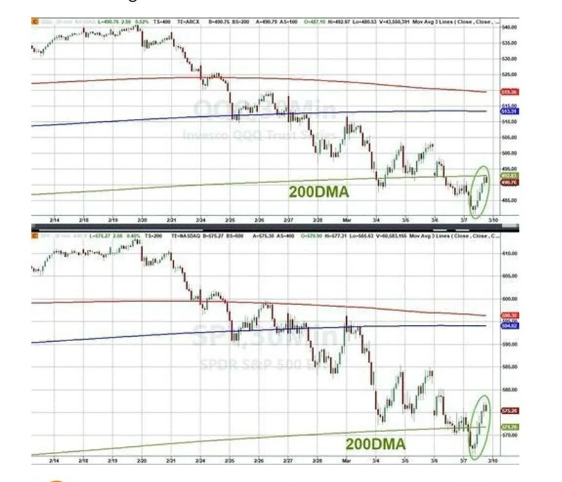 Nasdaq and S&P 500: Both have returned to their 50-day moving averages (50DMA).