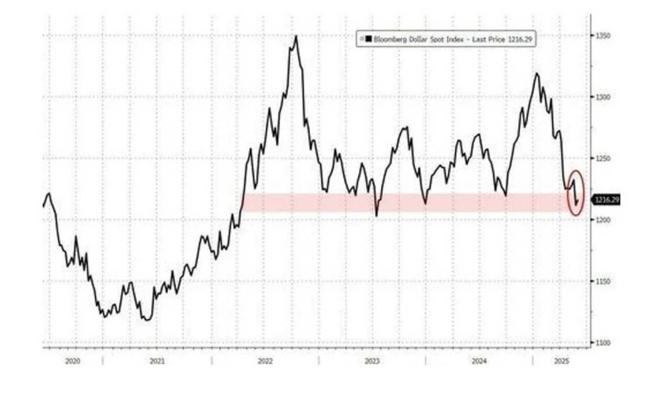 The U.S. dollar has declined for five straight months, now testing support levels not seen in three years.