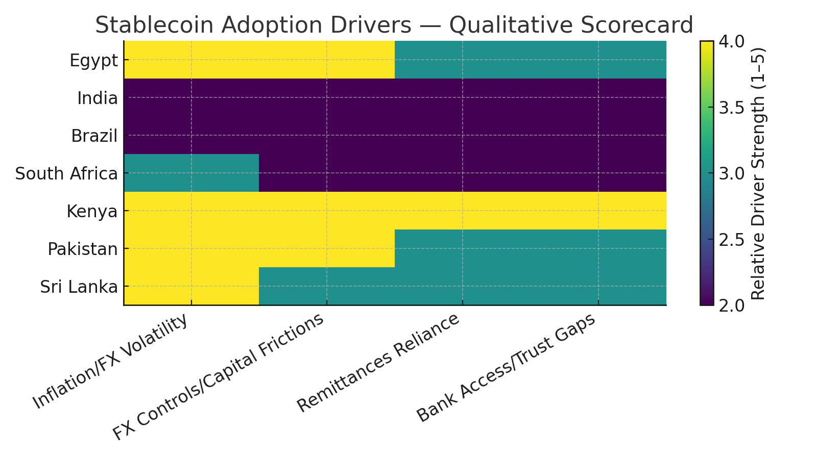Lower‑income corridors where inflation risk, Foreign Exchange (FX) frictions, and remittance flows are material show the highest stablecoin share of on‑chain activity. Households and SMEs prioritize return of capital over return on capital.